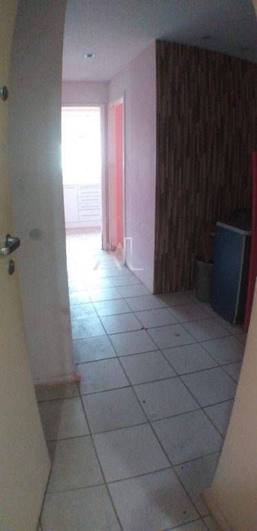Sala bem distribuída e dividida, com aproximadamente 32m², com divisórias e banheiro social!